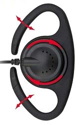 Bøylehøytaler med delt formbar bøyle og roterende høytaler for bruk på begge sider.